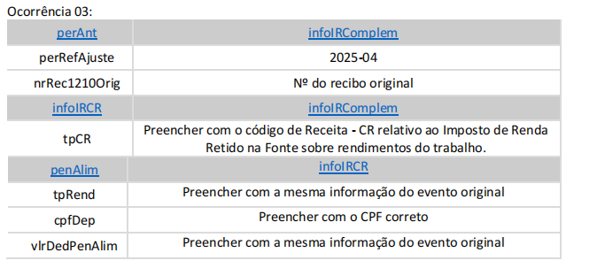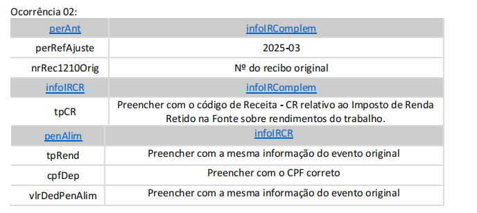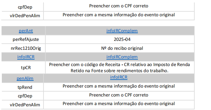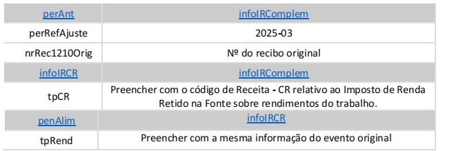 essa informação, utilizando o grupo [infoIRComplem] no grupo [perAnt], ele deve enviar o evento