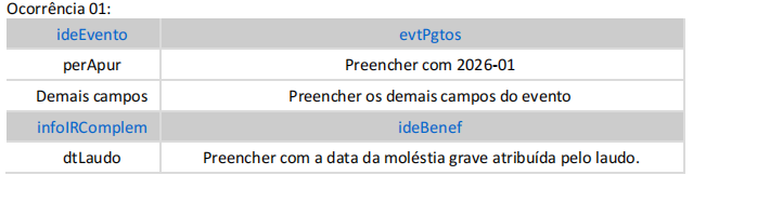 IR, como a data da moléstia grave prevista no laudo médico, referentes ao PA janeiro de 2026, deverá